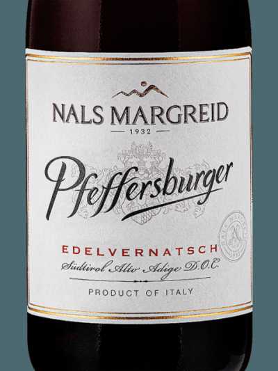 Nals Margreid Pfeffersburger Edelvernatsch to lekkie czerwone wino z Tyrolu Południowego, Włochy. Zrobione z winogron Edelvernatsch, ma jasny rubinowy kolor, aromaty czerwonych owoców i migdała. W smaku jest świeże, owocowe, z miękkimi taninami. Doskonałe do przystawek i białych mięs, serwowane w 12-14°C.